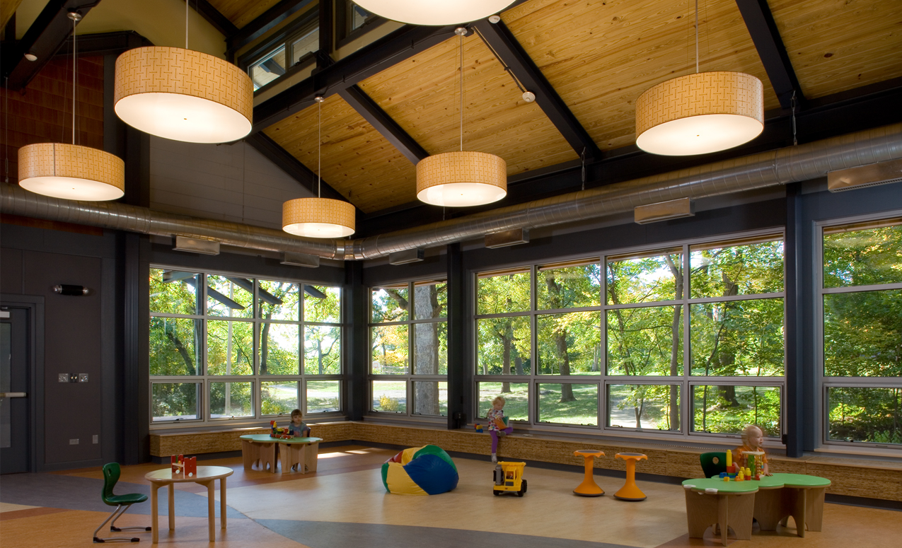 Seager Park Nature Center is a visitor and educational center within Naperville Park District and is home to the Park's nature preschool programs. The project features a geothermal heating system and solar tubes for natural daylighting.